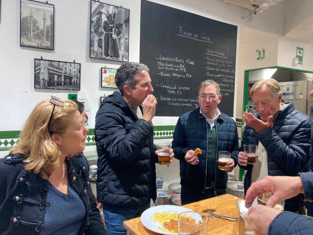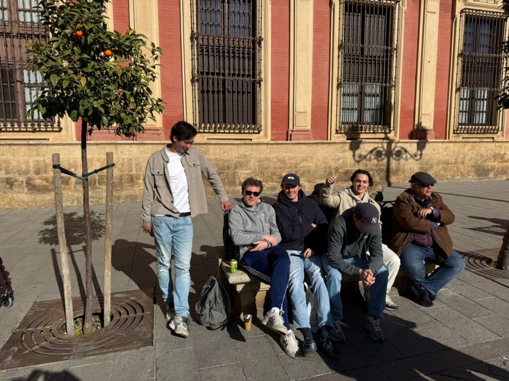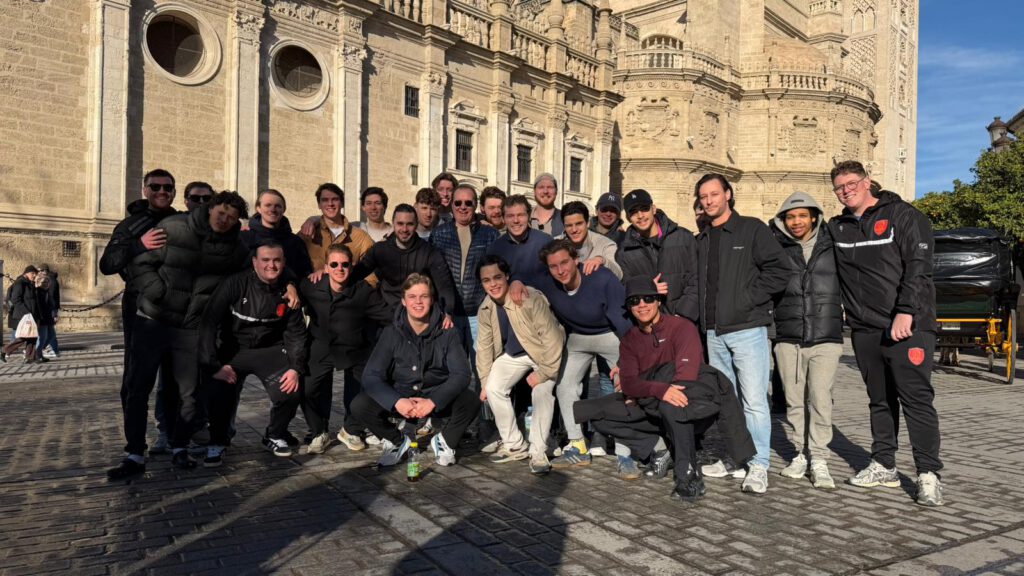 Dit jaar was het trouwens nog wel even spannend met al die vluchten die uitvielen door de sneeuw. Normaal gesproken vliegen we liever niet via Eindhoven, maar nu was dat achteraf juist onze redding. Daarnaast maak ik de berekeningen van het aantal sponsors dat we nodig hebben om rond te komen, waarna de sponsorcommissie aan de slag gaat om dat aantal ook echt te halen. Met 22 man en zelfs mensen zoals Lau en Els van Everdingen die direct vanuit Genève in Sevilla aansloten, was de opkomst dit jaar gelukkig heel goed.”